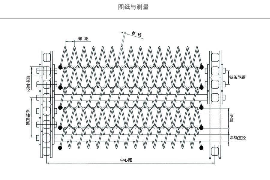 链条输送带是由链条驱动的输送网带,一般由链条带动小轴再带动网带运行。 网带采用轧牙串条、左右网条二根串,由大小网条连接而成,大网条内穿进小轴,小轴两端穿入链条孔,从而达到链条驱动输送网带。链条输送网带传动平稳、传动力矩小。