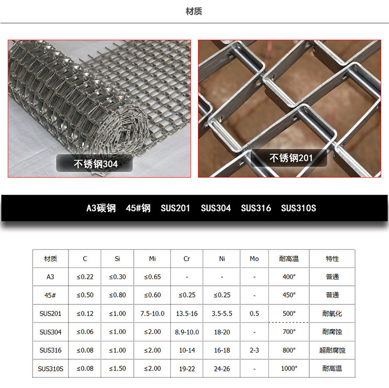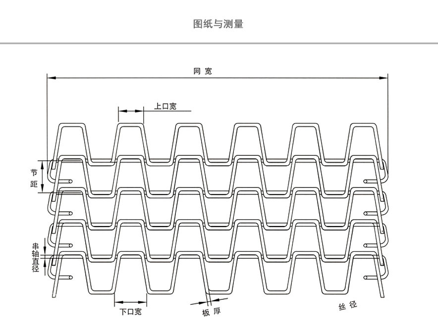 长城网带又称马蹄链,由扁平金属片和圆金属丝所组成,网带自重轻,网孔空隙大,网面平整,运行平稳,不会走偏。